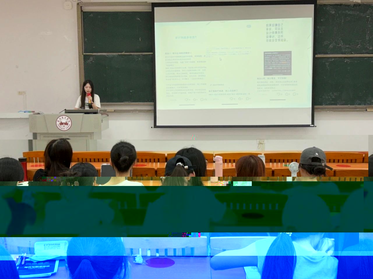 随後,六位優秀實習學生代表分别向同學們詳細介紹會計師事務所的實習内容和目前行業發展需求,分享他們各自的實習工作經驗。首先是鄭妍同學結合自身實習經曆,分享實習前期的簡曆制作和快速适應職場新環境的技巧。鄭妍同學強調,一份優秀的簡曆要牢牢把握崗位匹配度、實習和校園經曆、以及專業技能三個方面,讓簡曆在衆多實習生中脫穎而出。與此同時,提前了解實習單位的業務方向和企業文化,主動與同事溝通交流,是快速幫助自己融入團隊并順利開展工作的關鍵。